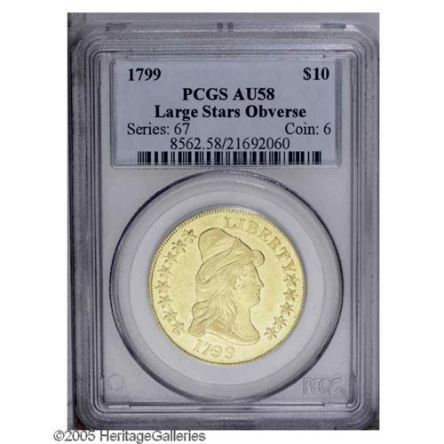 1799 $10 Large Stars Obverse AU58 PCGS. Breen-6841, B. 1799[$10] Large Stars Obverse AU58 PCGS.