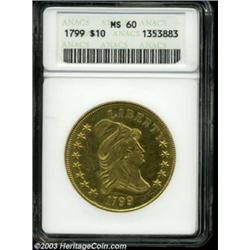 <table><tr><td><TABLE cellSpacing=0 cellPadding=0 width="100%" bgColor=#000000 border=0><TBODY> <TR><TD width="100%"><TABLE cellSpacing=1 cellPadding=3 width="100%" border=0><TBODY><TR><TD width="100%" bgColor=#79735c><FONT face=arial color=#ffffff size=3><B>Description</B> </FONT></TD></TR><TR><TD width="100%" bgColor=#ffffff><FONT face=arial size=2><B>1799 $10 Large Stars Obverse MS60 ANACS.</B></I> Large Stars, Breen-6841, B. 5-G, Taraszka-22, R.3. There are ten known die marriages of 1799 Eagles, however, only two varieties have large obverse stars. Both share a common obverse, with Taraszka-22 readily distinguished from the rare Taraszka-21 by the location of the leaf tip near the base of the I in AMERICA. This needle-sharp and seemingly prooflike representative has wispy slide marks in the fields, but the eye appeal is attractive as there are no individually significant abrasions. </FONT></TD></TR></TBODY></TABLE></TD></TR></TBODY></TABLE><BR><A name=PricesRealized></A><TABLE cellSpacing=0 cellPadding=0 width="100%" bgColor=#000000 border=0><TBODY><TR><TD width="100%"><TABLE cellSpacing=1 cellPadding=3 width="100%" border=0><TBODY><TR><TD width="100%" bgColor=#79735c><A name=PR><FONT face=arial color=#ffffff size=3><B>Previous Prices from Heritage Auctions</B> </FONT></A></TD></TR><TR><TD bgColor=#f6f6ed><TABLE cellSpacing=0 cellPadding=0 width="100%" border=1><TBODY><TR><TD align=middle width="33%"><B>Date</B></TD><TD align=middle width="33%"><B>Service</B></TD><TD align=middle width="33%"><B>Price</B></TD></TR><TR bgColor=whitesmoke><TD width="33%"><B>03/01/2003</B></TD><TD width="33%">NGC</TD><TD width="33%">$9,775.00</TD></TR><TR bgColor=whitesmoke><TD width="33%"><B>08/19/1995</B></TD><TD width="33%">NGC</TD><TD width="33%">$6,820.00</TD></TR></TBODY></TABLE></TD></TR><TR><TD bgColor=#ffffff><FONT face=arial size=1 ?>PLEASE NOTE: All prices realized reflect the final hammer price PLUS the buyer's premium in auctions that charge a buyer's premium. Each item has a notation at the top of the listing indicating whether that lot included a buyer's premium. Example: A item that sells with a final hammer price of $100 and a 20% buyer's premium will display with a price realized of $120. All information listed is intended to be as accurate as possible, but errors are possible. Please use this guide carefully and inform us of any inaccuracies. </FONT></TD></TR></TBODY></TABLE></TD></TR></TBODY></TABLE><BR><TABLE cellSpacing=0 cellPadding=0 width="100%" bgColor=#000000 border=0><TBODY><TR><TD width="100%"><TABLE cellSpacing=1 cellPadding=3 width="100%" border=0><TBODY><TR><TD width="100%" bgColor=#79735c colSpan=6><FONT face=arial color=#ffffff size=3><B>Price Guide*</B> </FONT></TD></TR><TR bgColor=#f6f6ed><TD align=middle><B>Grade</B> </TD><TD align=middle><B>Coin World<BR>(Trends)</B> </TD><TD align=middle><B>Numismedia<BR>Retail</B> </TD><TD align=middle><B>Numismedia<BR>Wholesale</B> </TD><TD align=middle><B>Coin<BR>Universe</B> </TD><TD align=middle><B>Heritage<BR>Value Index</B> </TD></TR><TR bgColor=#ffffff><TD align=middle>58</TD><TD align=right>$15,000.00</TD><TD align=right>---</TD><TD align=right>$7,825.00</TD><TD align=right>---</TD><TD align=right>$10,066.67</TD></TR><TR style="FONT-WEIGHT: bold" bgColor=#cccfdd><TD align=middle>60</TD><TD align=right>$18,000.00</TD><TD align=right>---</TD><TD align=right>$9,250.00</TD><TD align=right>$13,500.00</TD><TD align=right>$11,100.00</TD></TR><TR bgColor=#ffffff><TD align=middle>61</TD><TD align=right>---</TD><TD align=right>---</TD><TD align=right>$10,500.00</TD><TD align=right>$17,500.00</TD><TD align=right>$13,550.00</TD></TR><TR bgColor=#ffffff><TD colSpan=6><FONT size=1>*All information listed is intended to be as accurate as possible, but errors are possible. No item may be returned or refused based on this information which is provided as a service to our customers. You should contact each pricing source directly to determine the accuracy of this information. </FONT></TD></TR></TBODY></TABLE></TD></TR></TBODY></TABLE><BR><TABLE cellSpacing=0 cellPadding=0 width="100%" bgColor=#000000 border=0><TBODY><TR><TD width="100%"><TABLE cellSpacing=1 cellPadding=3 width="100%" border=0><TBODY><TR><TD width="100%" bgColor=#79735c><FONT face=arial color=#ffffff size=3><B>Population Guide</B> </FONT></TD></TR><TR bgColor=#ffffff><TD align=middle><!-- Begin Output of Population Grid--><TABLE cellSpacing=0 cellPadding=0 width="100%" border=0><TBODY><TR><TD vAlign=center><TABLE cellSpacing=0 width="100%" border=1 cellsadding="3"><TBODY><TR><TD vAlign=center><TABLE cellSpacing=0 cellPadding=3 width="100%" border=1><TBODY><TR><TD vAlign=center align=middle bgColor=#f0f1e8 colSpan=2 <CENTER><FONT face=Arial size=2><B>PCGS Pop </B></FONT><CENTER></CENTER></TD><TD vAlign=center align=middle bgColor=#f0f1e8 colSpan=2><CENTER><FONT face=Arial size=2><B>NGC Pop</B></CENTER></FONT></TD></TR><TR><TD vAlign=center><FONT face=Arial size=2>(60)</FONT> </TD><TD vAlign=center align=right><FONT face=Arial size=2>22</FONT> </TD><TD vAlign=center><FONT face=Arial size=2>(60)</FONT> </TD><TD vAlign=center align=right><FONT face=Arial size=2>8</FONT> </TD></TR><TR><TD vAlign=center><FONT face=Arial size=2>(>60)</FONT> </TD><TD vAlign=center align=right><FONT face=Arial size=2>142</FONT> </TD><TD vAlign=center><FONT face=Arial size=2>(>60)</FONT> </TD><TD vAlign=center align=right><FONT face=Arial size=2>172</FONT> </TD></TR></TBODY></TABLE></TD></TR></TBODY></TABLE></TD></TR></TBODY></TABLE><!-- End Output of Population Grid--></TD></TR></TBODY></TABLE></TD></TR></TBODY></TABLE><BR><TABLE cellSpacing=0 cellPadding=0 width="100%" bgColor=#000000 border=0><TBODY><TR> Important notice: Heritage usually auctions material at the rate of 200-250 lots per hour. On some occasions eBay Live bid software or the Internet may not be able to keep up with the pace of the auction. We recommend placing a realistic absentee bid now as insurance to avoid disappointment. Occasi