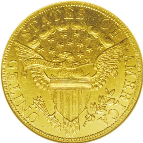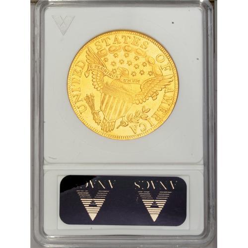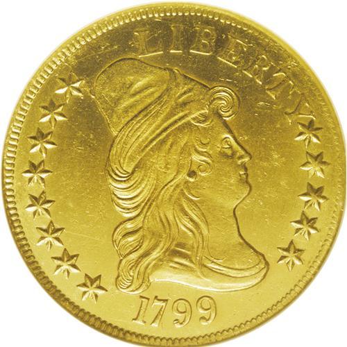 <B>1799<$10> Small Stars Obverse--Cleaned--ANACS. MS60 Details.</B></I> B. 3-B, Breen-6838, Taraszka-18, R.6. The 1799 is an available date by the rarified standards of Heraldic Eagle ten dollar pieces. However, this is the first known appearance of a 1799 Breen 3-B in a Heritage auction. While relatively few collectors currently aspire to collect early eagles by die variety, this could change in the near future once the long-awaited John Dannreuther volume is finally published. This subdued orange-gold example is boldly struck, and the only relevant mark is a horizontal pinscratch concealed within the right vertical shield stripes. Faint adjustment marks within the shield are of mint origin. Considering the travails so many early eagles have endured, the problems of the present piece should be readily accepted by the specialist aware of the significance of this Breen 3-B offering.