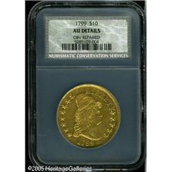 <B>1799 $10 Small Stars Obverse--Obverse Repaired--NCS. AU Details.</B></I> B. 4-E, Taraszka-19, R.3. This is one of the most plentiful of all 1799 die varieties and is an excellent choice for the type collector. The surfaces are bright yellow in color with hints of green on the reverse. The obverse has a matte-like appearance and is repaired with some smoothing of the fields. Lot:8719
