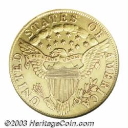 <table><tr><td><TABLE cellSpacing=0 cellPadding=0 width="100%" bgColor=#000000 border=0><TBODY> <TR><TD width="100%"><TABLE cellSpacing=1 cellPadding=3 width="100%" border=0><TBODY><TR><TD width="100%" bgColor=#79735c><FONT face=arial color=#ffffff size=3><B>Description</B> </FONT></TD></TR><TR><TD width="100%" bgColor=#ffffff><FONT face=arial size=2><B>1799 $10 Small Stars Obverse--Tooled, Cleaned--ANACS. XF Details, Net VF20.</B></I> Breen-6839, B. 2-A, Taraszka-14, R.6. Although the 1799 is an available date within this rare gold type, most survivors encountered are Taraszka-19 or Taraszka-22. Taraszka-14, which has stars distant from the bust and the Y in LIBERTY, is decidedly rare. This is a well defined coin with light overall wear and shiny, green-gold surfaces. Both sides are glossy in texture with smoothed over fields and scattered hairlines. A relatively affordable example for the circulated type collector. </FONT></TD></TR></TBODY></TABLE></TD></TR></TBODY></TABLE><BR><A name=PricesRealized></A><TABLE cellSpacing=0 cellPadding=0 width="100%" bgColor=#000000 border=0><TBODY><TR><TD width="100%"><TABLE cellSpacing=1 cellPadding=3 width="100%" border=0><TBODY><TR><TD width="100%" bgColor=#79735c><A name=PR><FONT face=arial color=#ffffff size=3><B>Previous Prices from Heritage Auctions</B> </FONT></A></TD></TR><TR><TD bgColor=#f6f6ed><TABLE cellSpacing=0 cellPadding=0 width="100%" border=1><TBODY><TR><TD align=middle width="33%"><B>Date</B></TD><TD align=middle width="33%"><B>Service</B></TD><TD align=middle width="33%"><B>Price</B></TD></TR><TR bgColor=whitesmoke><TD width="33%"><B>10/06/2001</B></TD><TD width="33%">ANACS</TD><TD width="33%">$2,127.50</TD></TR></TBODY></TABLE></TD></TR><TR><TD bgColor=#ffffff><FONT face=arial size=1 ?>PLEASE NOTE: All prices realized reflect the final hammer price PLUS the buyer's premium in auctions that charge a buyer's premium. Each item has a notation at the top of the listing indicating whether that lot included a buyer's premium. Example: A item that sells with a final hammer price of $100 and a 20% buyer's premium will display with a price realized of $120. All information listed is intended to be as accurate as possible, but errors are possible. Please use this guide carefully and inform us of any inaccuracies. </FONT></TD></TR></TBODY></TABLE></TD></TR></TBODY></TABLE><BR><TABLE cellSpacing=0 cellPadding=0 width="100%" bgColor=#000000 border=0><TBODY><TR><TD width="100%"><TABLE cellSpacing=1 cellPadding=3 width="100%" border=0><TBODY><TR><TD width="100%" bgColor=#79735c colSpan=6><FONT face=arial color=#ffffff size=3><B>Price Guide*</B> </FONT></TD></TR><TR bgColor=#f6f6ed><TD align=middle><B>Grade</B> </TD><TD align=middle><B>Coin World<BR>(Trends)</B> </TD><TD align=middle><B>Numismedia<BR>Retail</B> </TD><TD align=middle><B>Numismedia<BR>Wholesale</B> </TD><TD align=middle><B>Coin<BR>Universe</B> </TD><TD align=middle><B>Heritage<BR>Value Index</B> </TD></TR><TR bgColor=#ffffff><TD align=middle>15</TD><TD align=right>---</TD><TD align=right>---</TD><TD align=right>---</TD><TD align=right>---</TD><TD align=right>$3,054.17</TD></TR><TR style="FONT-WEIGHT: bold" bgColor=#cccfdd><TD align=middle>20</TD><TD align=right>---</TD><TD align=right>---</TD><TD align=right>---</TD><TD align=right>---</TD><TD align=right>$3,392.36</TD></TR><TR bgColor=#ffffff><TD align=middle>25</TD><TD align=right>---</TD><TD align=right>---</TD><TD align=right>---</TD><TD align=right>---</TD><TD align=right>$3,657.43</TD></TR><TR bgColor=#ffffff><TD colSpan=6><FONT size=1>*All information listed is intended to be as accurate as possible, but errors are possible. No item may be returned or refused based on this information which is provided as a service to our customers. You should contact each pricing source directly to determine the accuracy of this information. </FONT></TD></TR></TBODY></TABLE></TD></TR></TBODY></TABLE><BR><TABLE cellSpacing=0 cellPadding=0 width="100%" bgColor=#000000 border=0><TBODY><TR><TD width="100%"><TABLE cellSpacing=1 cellPadding=3 width="100%" border=0><TBODY><TR><TD width="100%" bgColor=#79735c><FONT face=arial color=#ffffff size=3><B>Population Guide</B> </FONT></TD></TR><TR bgColor=#ffffff><TD align=middle><!-- Begin Output of Population Grid--><TABLE cellSpacing=0 cellPadding=0 width="100%" border=0><TBODY><TR><TD vAlign=center><TABLE cellSpacing=0 width="100%" border=1 cellsadding="3"><TBODY><TR><TD vAlign=center><TABLE cellSpacing=0 cellPadding=3 width="100%" border=1><TBODY><TR><TD vAlign=center align=middle bgColor=#f0f1e8 colSpan=2 <CENTER><FONT face=Arial size=2><B>PCGS Pop </B></FONT><CENTER></CENTER></TD><TD vAlign=center align=middle bgColor=#f0f1e8 colSpan=2><CENTER><FONT face=Arial size=2><B>NGC Pop</B></CENTER></FONT></TD></TR><TR><TD vAlign=center><FONT face=Arial size=2>(20)</FONT> </TD><TD vAlign=center align=right><FONT face=Arial size=2>0</FONT> </TD><TD vAlign=center><FONT face=Arial size=2>(20)</FONT> </TD><TD vAlign=center align=right><FONT face=Arial size=2>0</FONT> </TD></TR><TR><TD vAlign=center><FONT face=Arial size=2>(>20)</FONT> </TD><TD vAlign=center align=right><FONT face=Arial size=2>91</FONT> </TD><TD vAlign=center><FONT face=Arial size=2>(>20)</FONT> </TD><TD vAlign=center align=right><FONT face=Arial size=2>0</FONT> </TD></TR></TBODY></TABLE></TD></TR></TBODY></TABLE></TD></TR></TBODY></TABLE><!-- End Output of Population Grid--></TD></TR></TBODY></TABLE></TD></TR></TBODY></TABLE><BR><TABLE cellSpacing=0 cellPadding=0 width="100%" bgColor=#000000 border=0><TBODY><TR> Important notice: Heritage usually auctions material at the rate of 200-250 lots per hour. On some occasions eBay Live bid software or the Internet may not be able to keep up with the pace of the auction. We recommend placing a realistic absentee bid now as insurance to avoid disappointment. Occasionally the auctioneer may eliminate or reject an eBay Live bid, and the auctioneer may also reopen a lot after the close of the eBay live bid