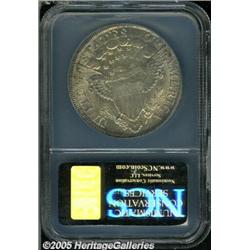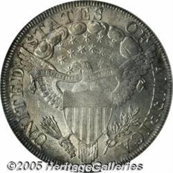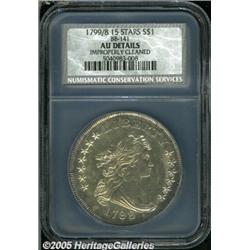 <B>1799/8<img border='0' src='http://www.heritagecoins.com/images/star.gif' width=10 height=10>$1 15 Stars Reverse AU Details, Improperly Cleaned, NCS.</B></I> B-3, BB-141. The popular "15 star variety" with the two extra stars buried in the clouds at far left and right. Once lightly cleaned, the surfaces have retained a mostly bright appearance. Well struck overall, there are only a couple of minor marks visible on the obverse.<BR><I>From The Richard J. Chouinard Collection of United States Coins, Part Three.</B></I>
