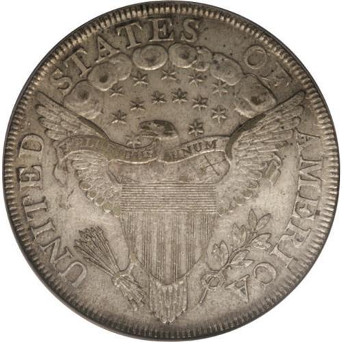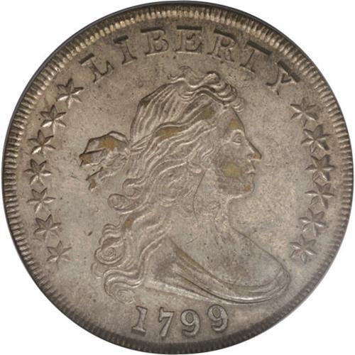<B>1799/8 S$1 15 Stars Reverse--Reverse Scratched--NCS. AU Details.</B></I> B-3, BB-141, R.3. A famous blundered die variety. The engraver entered 15 stars above the eagle, instead of the intended 13. He then attempted to conceal his error by increasing the size of the first and final clouds, extending them over the two errant stars, but the points of each star emerge from the expanded clouds. This uncommonly sharp cream-gray piece has a small X scratched above the right shield point, but the curved line near the ear is actually a lintmark of mint origin.<BR><BR><b>Shipping:</b> Coins & Currency (<a target="_blank" href="http://www.heritageauctions.com/common/shipping.php">view shipping information</a>)
