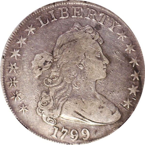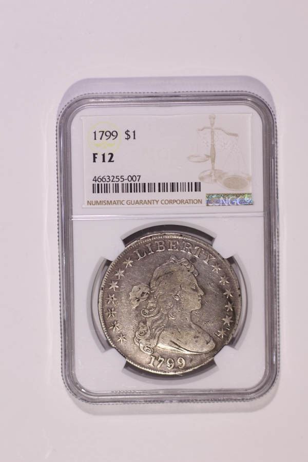 1799 Draped Bust Dollar. NGC graded Fine-12.