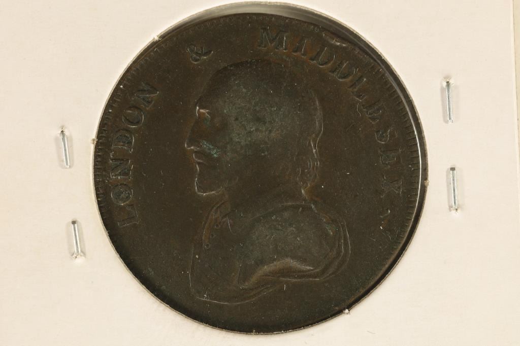 PROVINCIAL TOKENS PRIVATELY MINTED TOKEN COINAGE STRUCK AND USED DURING THE LATTER PART OF THE 19TH CENTURY IN ENGLAND. SIMILAR TO OUR CIVIL WAR AND HARD TIMES TOKENS. LONDON AND MIDDLEESEX HALF PENNY