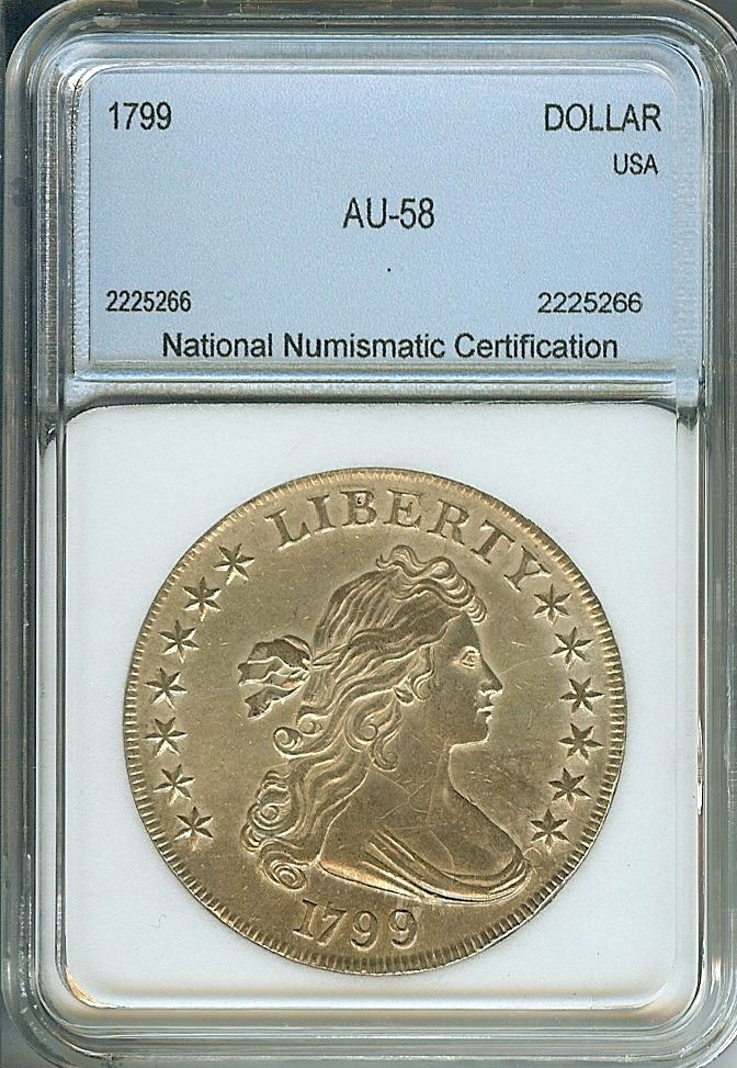 1799 DRAPED BUST SILVER DOLLAR NNC AU58 VERY RARE!
