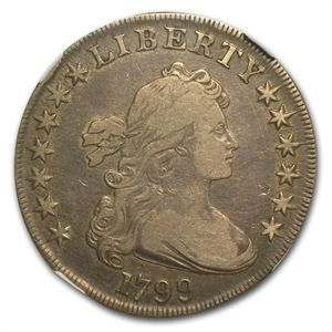 1799 Draped Bust Dollar Fine-15 NGC **|**|** Year: 1799 ; Mint Mark: F-15 ; Grade: P - Philadelphia ; Denomination: 1 ; MSRP: $3500