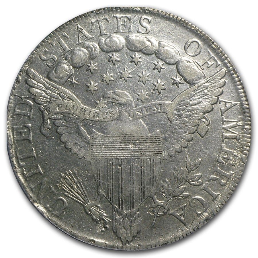 1799 Draped Bust Dollar XF-45 Details Cleaned PCGS. Valued PCGS $5400. This 215 year old Draped Bust Dollar still has plenty of detail! This Draped Bust Silver Dollar features 13 stars and the Heraldic Eagle reverse that was used from 1798 to 1804. This coin has been graded Extra Fine Details - Cleaned by PCGS.