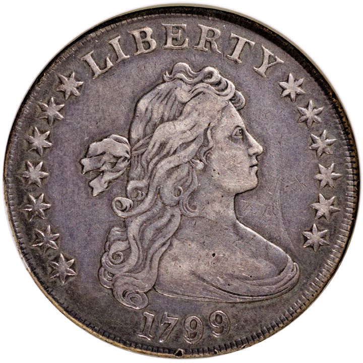 1799 Draped Bust Silver Dollar. Heraldic Eagle Reverse. ANACS graded Very Fine-30.