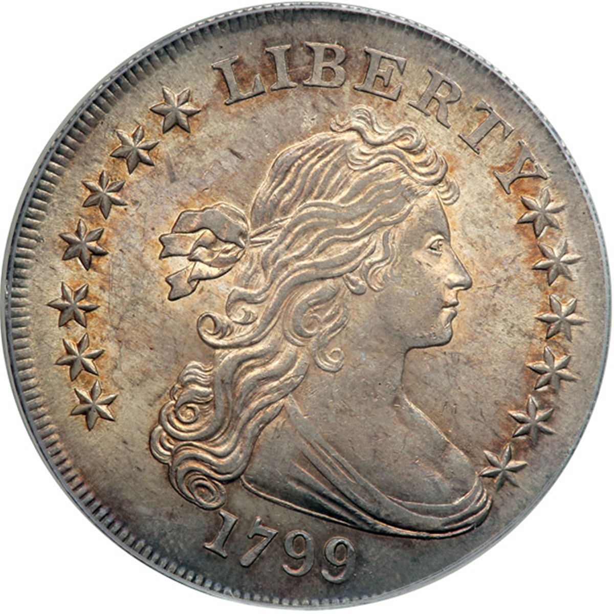 1799 Irregular Date. PCGS graded MS-64 PQ. Housed in a new secure plus holder. Pop 1; none finer at PCGS for the variety. Absolutely phenomenal cartwheel luster! This coin has anything that even the most discerning collector could ever dream of. The dazzling eye appeal truly sets this beauty apart from the rest. While viewing this astounding creation one can hardly turn away. With such pizzazz this marvelous example is deserving of a strong bid. An opportunity to own such a fantastic piece is few and far between.