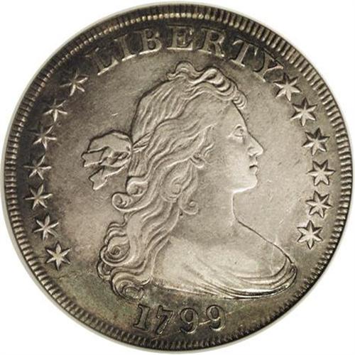 <B>1799 S$1 7x6 Stars--Cleaned--ANACS. XF45 Details.</B></I> B-21, BB-169, R.3. Aquamarine borders frame the cream-gray centers. Glimpses of luster persist within the hair, wings, clouds, stars, and legends. The hairlines are noticeable, but there are no individually relevant marks.<BR><BR><b>Shipping:</b> Coins & Currency (<a target="_blank" href="http://www.heritageauctions.com/common/shipping.php">view shipping information</a>)