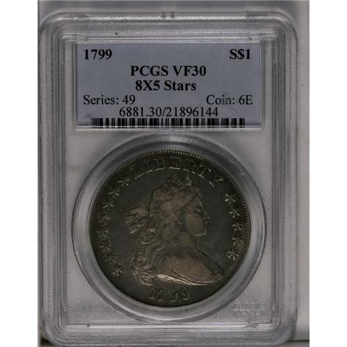 1799 S$1 8x5 Stars VF30 PCGS. B-23, BB-159, R.4. This