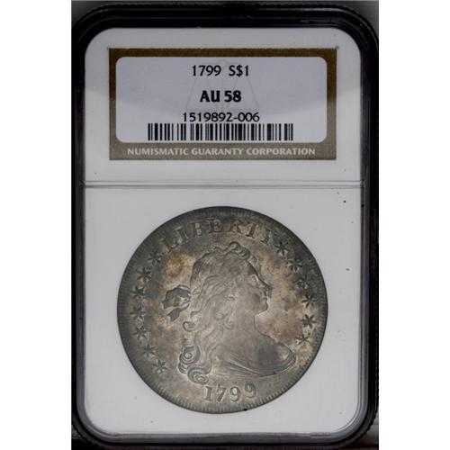 1799 S$1 AU58 NGC. B-5, BB-157, R.2. Die cracks throug