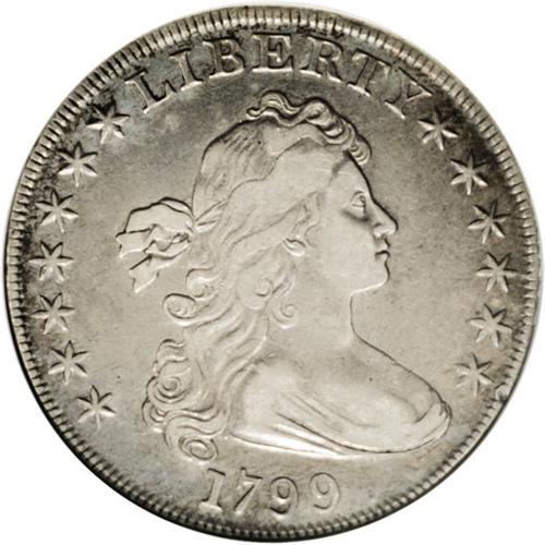<B>1799<img border='0' src='http://www.heritagecoins.com/images/star.gif' width=10 height=10>$1>--Cleaned--ANACS. VF30 Details.</B></I> B-11, BB-161, R.2. One of two ''No Berries'' reverses for the year, being further distinguished by a broken U in UNITED and a die crack past the D in UNITED as reported on the previous B-11. The cleaning on this rather attractive silver-gray example is not particularly distracting (hence the word attractive) and both sides are accented in golden-orange and blue peripheral toning. <BR><BR><B>Important notice:</B> Heritage usually auctions material at the rate of 200-250 lots per hour. On some occasions eBay Live bid software or the Internet may not be able to keep up with the pace of the auction. We recommend placing a realistic absentee bid now as insurance to avoid disappointment. Occasionally the auctioneer may eliminate or reject an eBay Live bid, and the auctioneer may also reopen a lot after the close of the eBay live bidding (usually because we missed an audience bid), and may reject your bid even if it shows you as the winning bidder. By bidding via eBay Live, you agree that Heritage may award the lot to another bidder at its sole discretion under the circumstances described above or any other reasonable circumstances. Since eBay bids are not shown to us until we open the lot on the floor, we treat those bids just like floor bids. In most cases the floor responds before the eBay bid is presented to us, due to Internet lag time, so for consistency we have made it a policy that floor bids are always considered first over tie eBay live bids. Also please note that all Heritage lots purchased through eBay Live carry a 20% Buyer's Premium. Please make sure you read the Terms and Conditions before you bid. This lot is being auctioned in conjunction with a live floor auction by Heritage Galleries & Auctioneers. All final auction and invoice information will be supplied by Heritage Galleries & Auctioneers, and all other information should be considered preliminary. Lot:2132 <BR><BR><B>Winning Notification and Billing:</B> After the FINAL session in this auction is complete, Heritage will send e-mail and snail mail invoices. This process normally takes several days. All final auction and invoice information will be supplied by Heritage Galleries & Auctioneers, and all other information should be considered preliminary. <BR><BR>This auction will be conducted on a live auction floor and over the Internet through eBay Live. If you choose to place an absentee bid, please take a moment to <font color='#0000ff'><u><a href='http://pages.ebay.com/liveauctions/help/before/laabsentee.html'>learn how eBay Live absentee bidding works</a></u></font><font color='#000000'>
