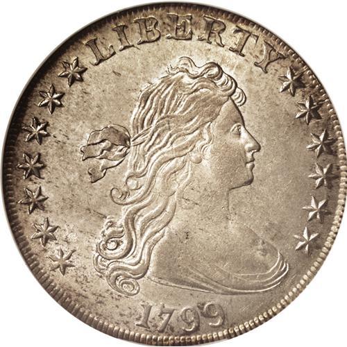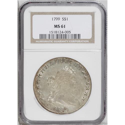 1799 S$1 MS61 NGC. B-8, BB-165, R.2. The inner ray of