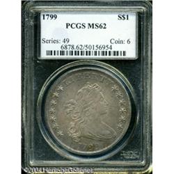 1799 S$1 MS62 PCGS. B-9, BB-166, R.1. Die State II 1799 S$1 MS62 PCGS.