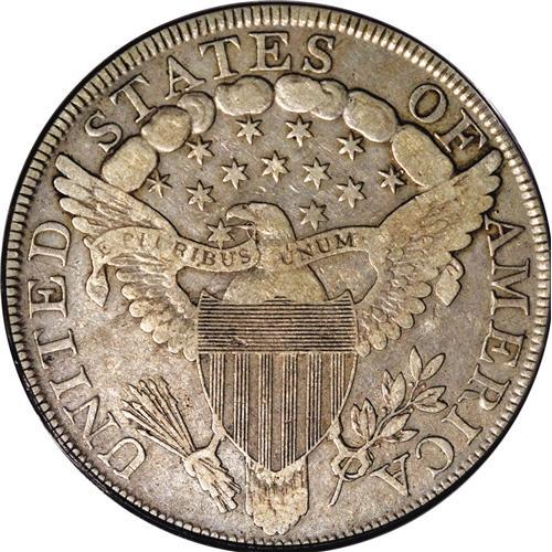 <B>1799<img border='0' src='http://www.heritagecoins.com/images/star.gif' width=10 height=10>$1> VF25 PCGS.</B></I> B-16, BB-158, R.2. The so-called "Close 17 Obverse" and readily identified by the close proximity of the 1 and 7 in the date. Rose-gray patina covers both sides with a dark area over Liberty's profile. Evenly worn and well detailed for the assigned grade. Highly desirable as a type coin.