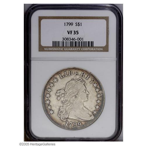 1799 S$1 VF35 NGC.From The Lexington Collection. 1799[S$1] Irregular Date, 13 Stars VF35 NGC.