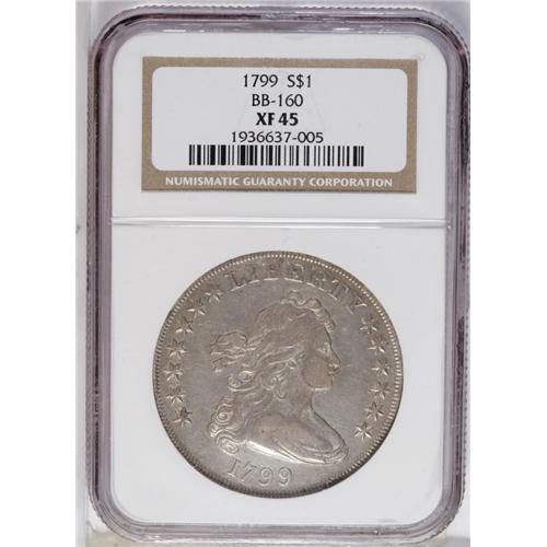 1799 S$1 XF45 NGC. B-12, BB-160, R.3. Light golden-bro