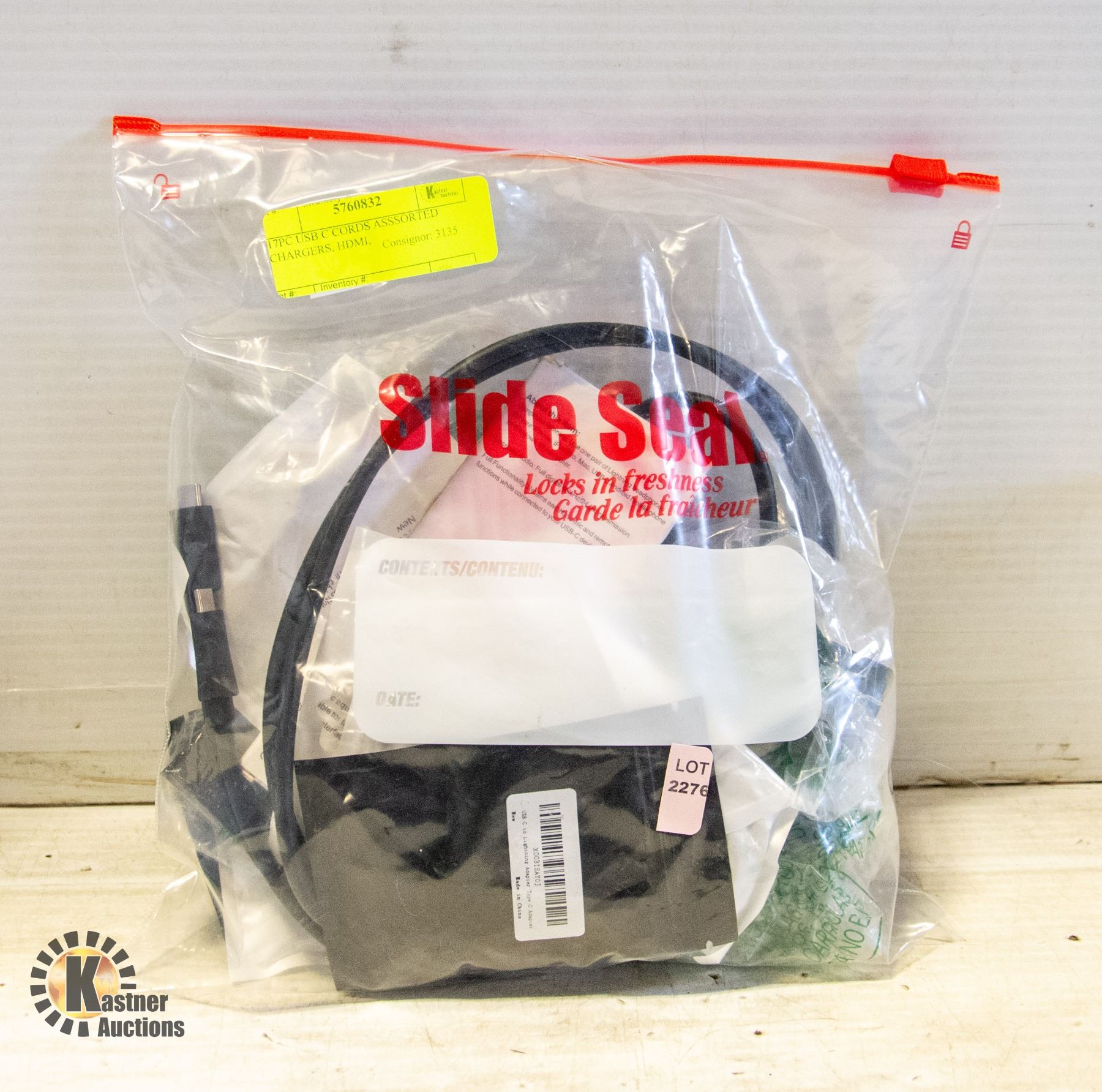 17PC USB C CORDS ASSSORTED CHARGERS, HDMI,