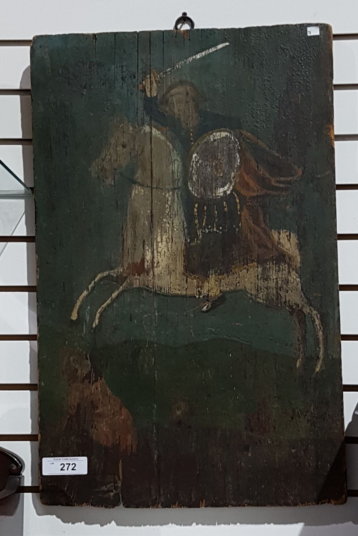 17TH CENTURY PANEL DEPICTING SPANISH KNIGHT ON HORSEBACK