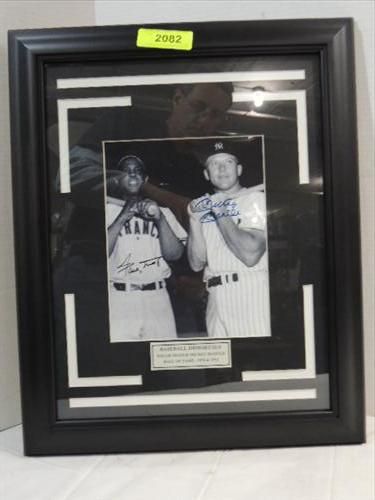 17X21 FRAMED BASEBALL PHOTO AUTOGRAPH MICKEY MANTLE & WILLIE MAYS. INCLUDES COA FROM MFP II #G064447. AS SHOWN. VIEW PICTURE FOR DETAIL.
