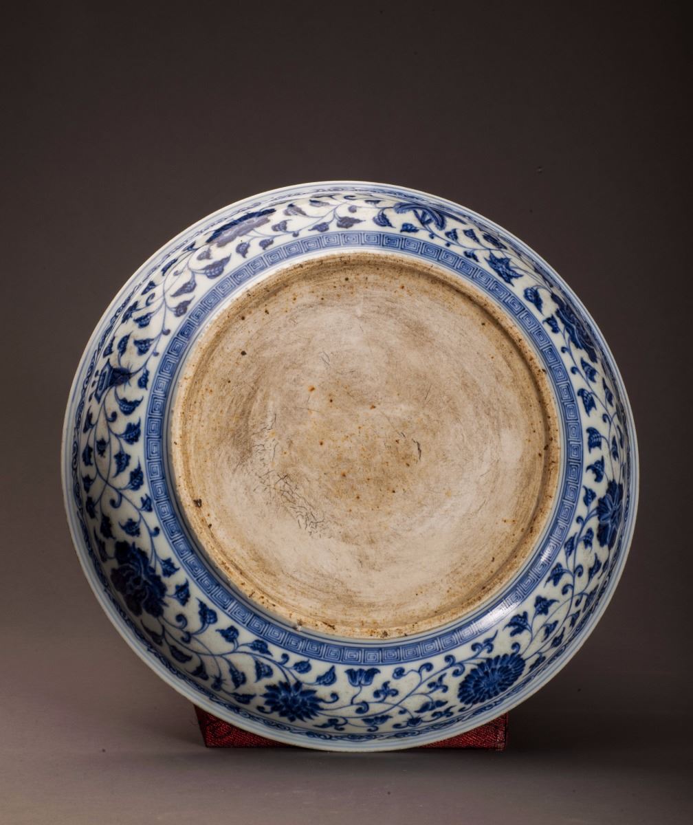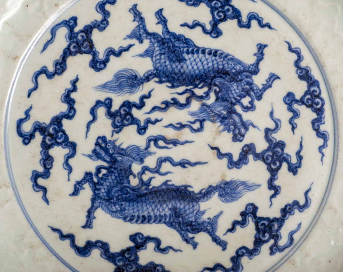 Depicting With Vivid Blue Glazed Qi Lin Flying In Amidst With The Lucky Fires And Clouds, This Fine Porcelain Charger Plate With Delicate Blue Glazed Patterns Edge At Rim. Decorated With Flower Scrolling Band AtBack Of The Charger.