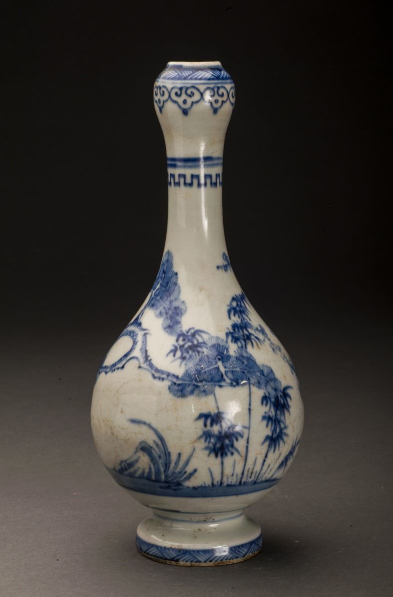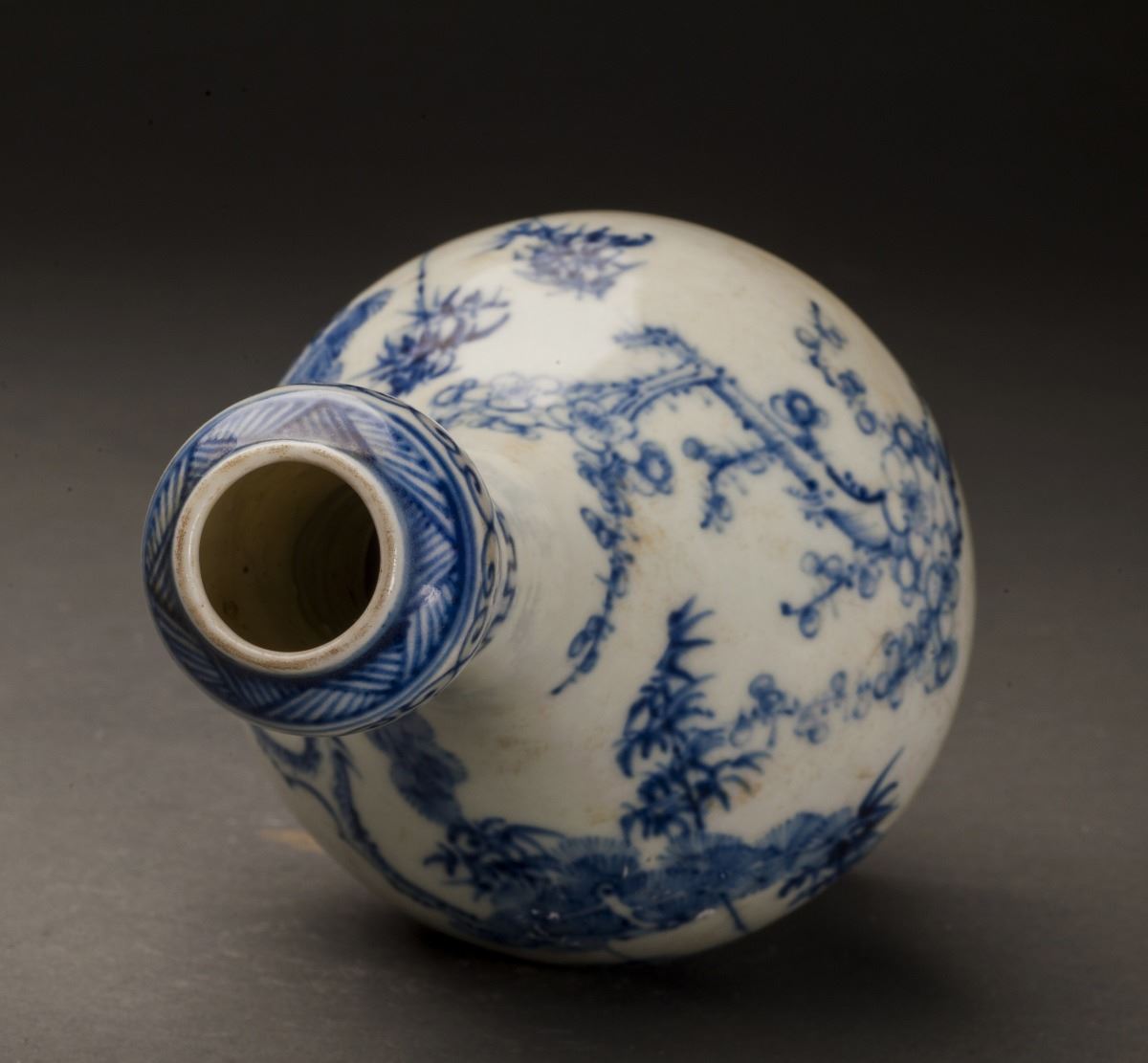 With The Unique Design Of Garlic-head At Top, Painted With Vivid Blooming Plum Flowers And Blue Glazed Bamboo At The Finely Potted Cavetto. Marked As "kangxi(1662-1722)" On The Bottom.