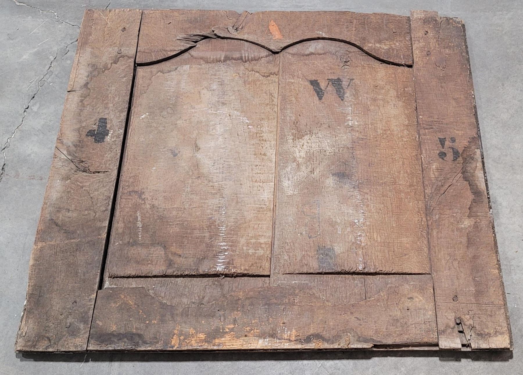 17th Century Chateau Paneling for a Library. The paneling are remnants salvaged from the world renown Chateau de Richelieu. The Chateau was an enormous 17th Century manor house built by the French Clergyman Cardinal Richelieu (1858-1642) in Touraine. It was demolished for building materials in 1805 and almost nothing of it remains today. Construction took place between 1631-1642 and employed around 2000 workers. The paneling was inherited decades ago and has been in storage. Likely to be walnut, the panels are hand carved and pegged. Some of the panels maintain the original hardware and inventory numbering.