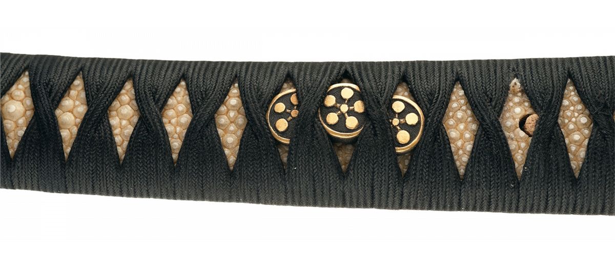 Very fine. Some light spotting, chips and handling marks are visible on the blade, with a fair state of polish and defined temper line. Mekugi is absent, with some light wear on the fittings. The lacquer is excellent, with a few light handling marks. A very good sword, in a fine untouched state of preservation.