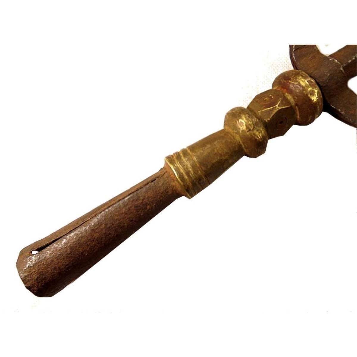 Early Qing Dynasty, 17thc pole arm spear. Iron blade & cross-guard. Hammered brass mount. 12 1/4" blade. 20" overall length.