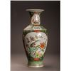 A Fine And Rare Porcelain Vase With A Flaring Mouth Over The Thin Neck, With Two White Grounds At Cavetto Over The Green Glazed Base. Each Grounds Painted With Vivid Birds And Blooming Flowers. Designed In ExtremelyDetailed. With The Repeated Patterns At Neck. Marked As "kangxi(1662-1722)" On The Bottom.