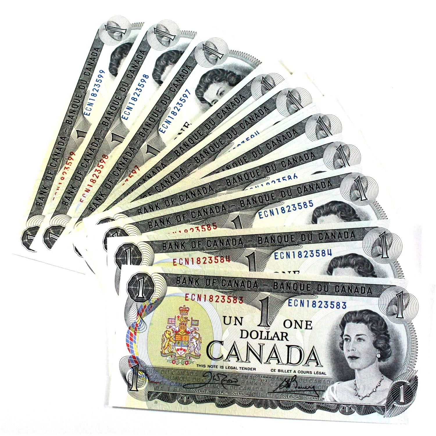 17x Consecutive 1973 $1 Bank of Canada notes ECN Prefix. 17pcs