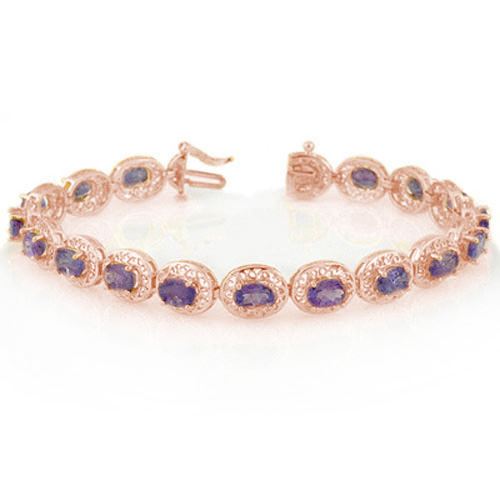 11330 - REF-123H6M ---- 18.0 CTW Tanzanite Bracelet 14K Rose Gold ---- Luxury Designer Brand Bracelet Appraised at $9,500 Certificate Number US11330 14k Rose gold, Bracelet Size is 7 Inches, Bracelet measuring approx. 7" x 1/4", weighing in total approx. 12 grams. Made in the USA and is stamped 14k, Main stone 18 carat total weight containing 18 pieces of Intense Violet Blue color with AAA quality Oval shape cut Tanzanite , Stone #2 carat total weight containing pieces of color with quality shape cut
