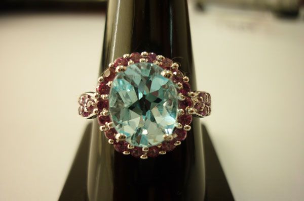 18.00 ctw BLUE TOPAZ and tourmiline Cut fine ring .925 **|**|** 18.00 ctw BLUE TOPAZ and tourmiline Cut fine ring .925 STERLING SILVER ; MSRP: $675