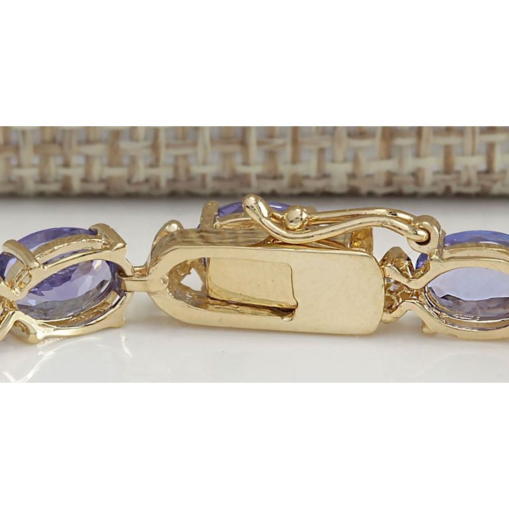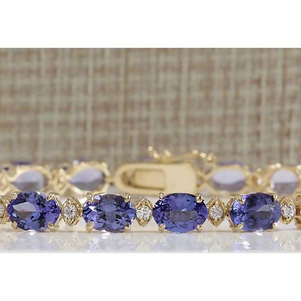 18.03 CTW Natural Tanzanite And Dimond Bracelet In 14k Solid Yellow Gold