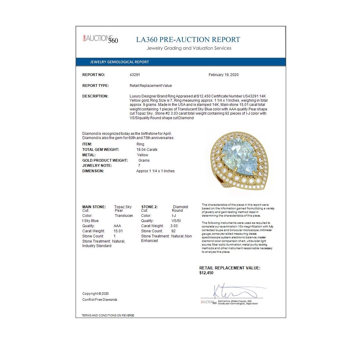 REF-251W6H - SKU: 43291 ---- 18.04 ctw Certified Sky Topaz & Diamond Victorian Ring 14K Yellow Gold