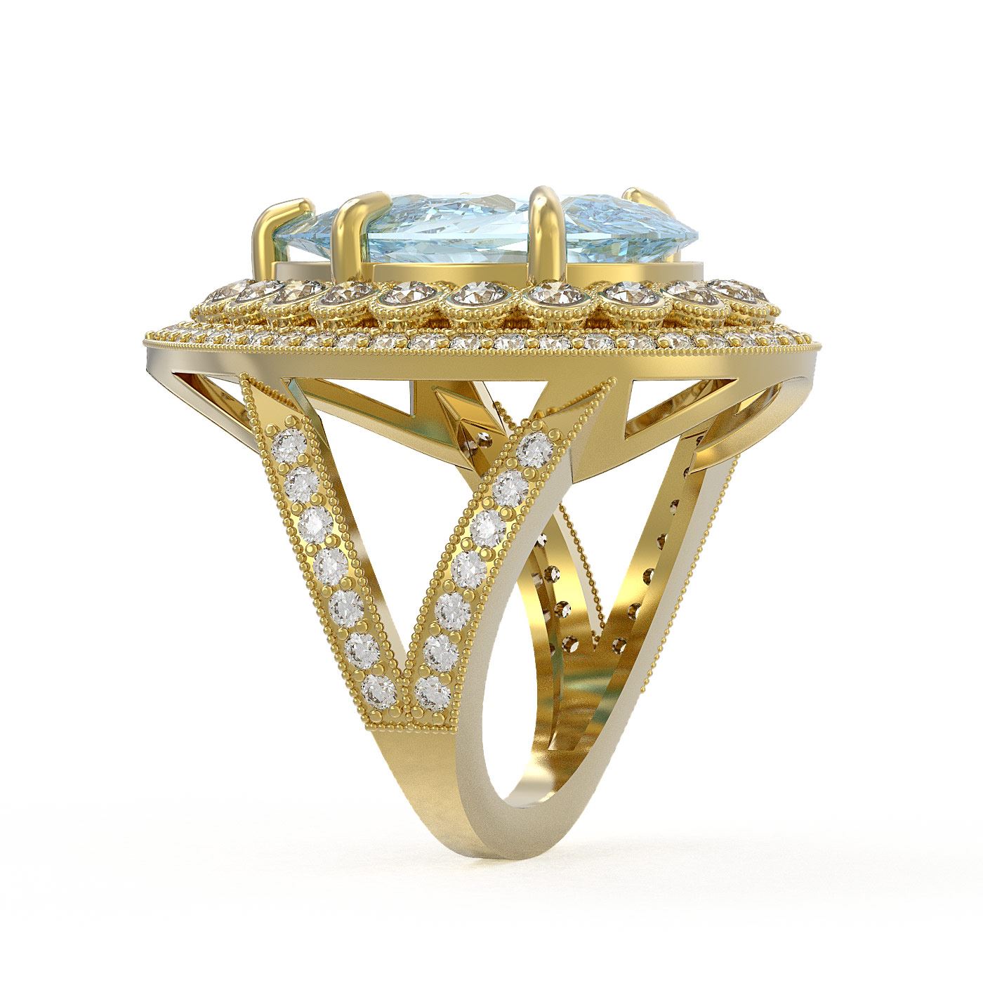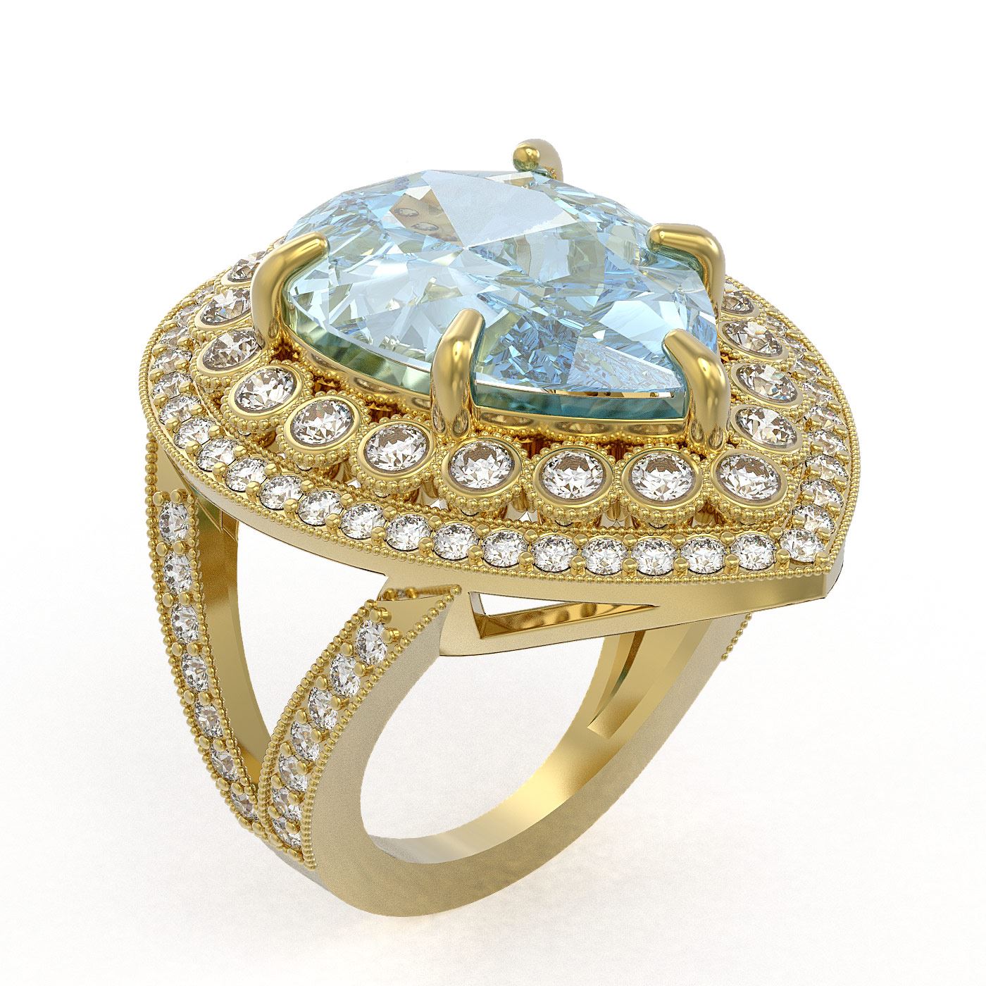 REF-251W6H - SKU: 43291 ---- 18.04 ctw Certified Sky Topaz & Diamond Victorian Ring 14K Yellow Gold
