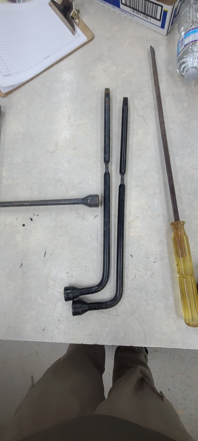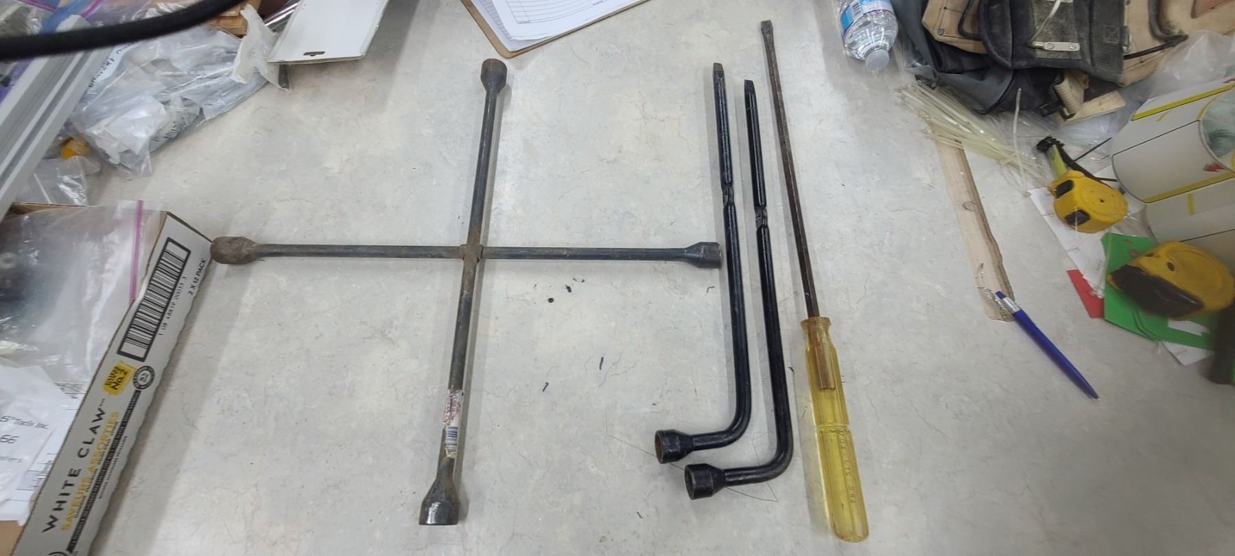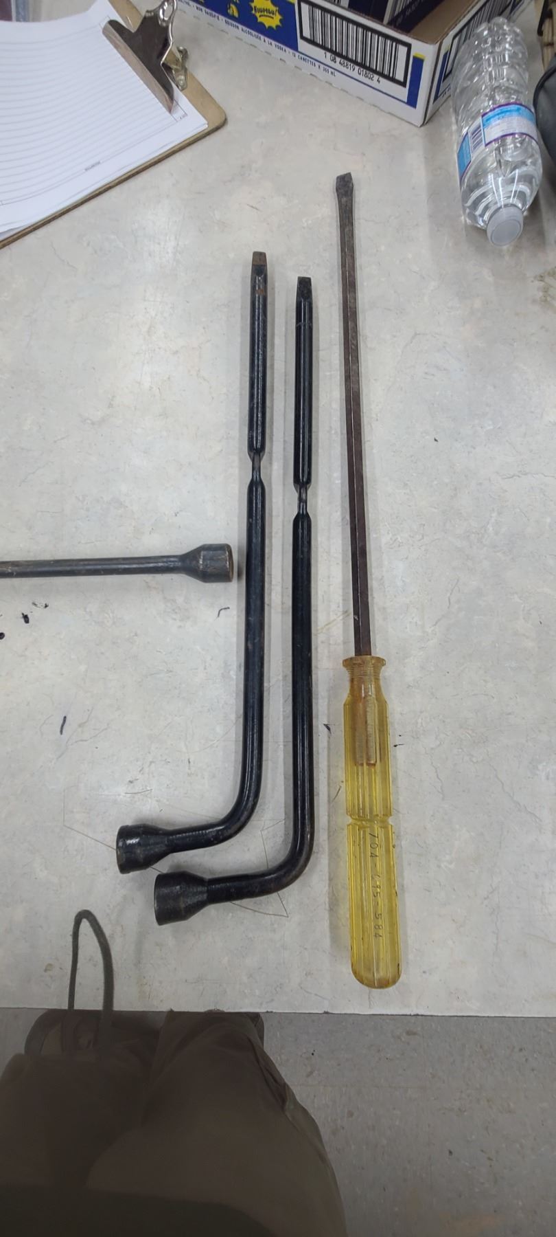 18 1/2" FLAT HEAD SCREW DRIVER AND THREE TIRE IRONS