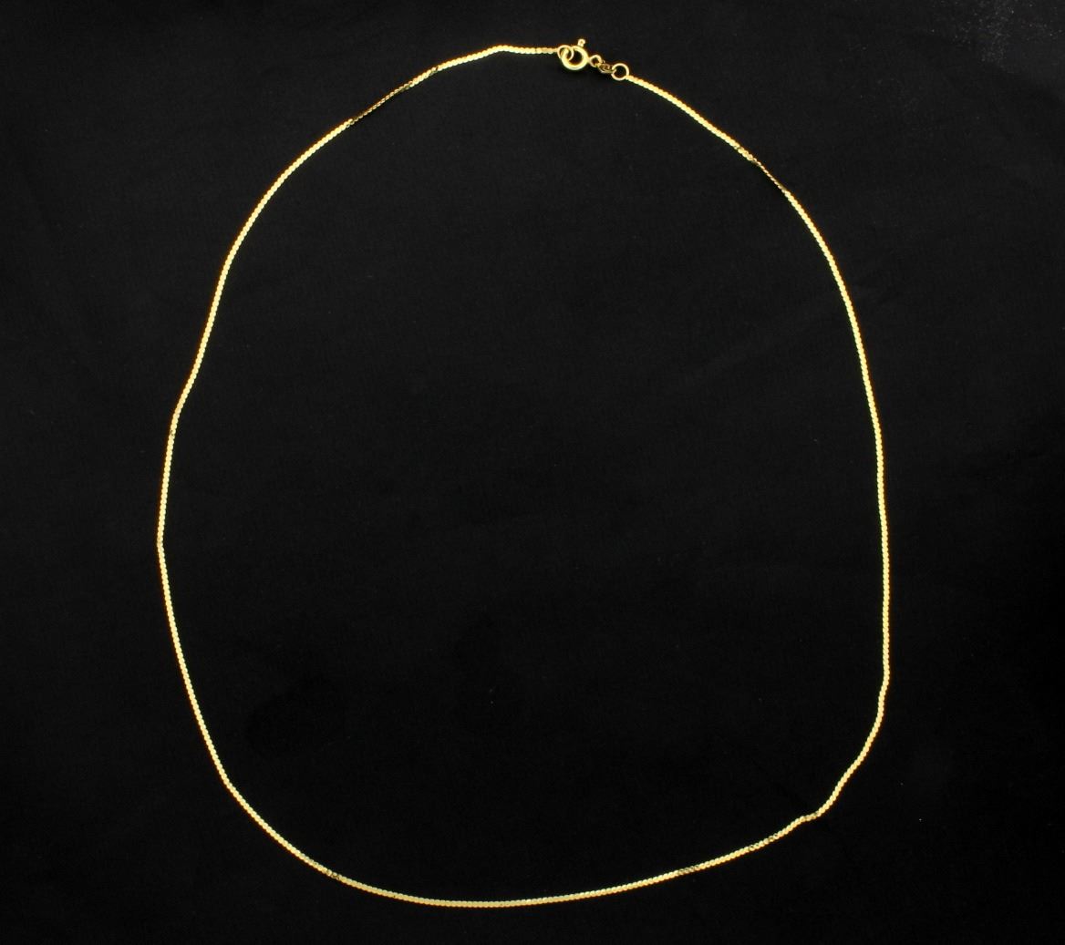 In 14K yellow gold the chain is 1mm wide. 1.7g