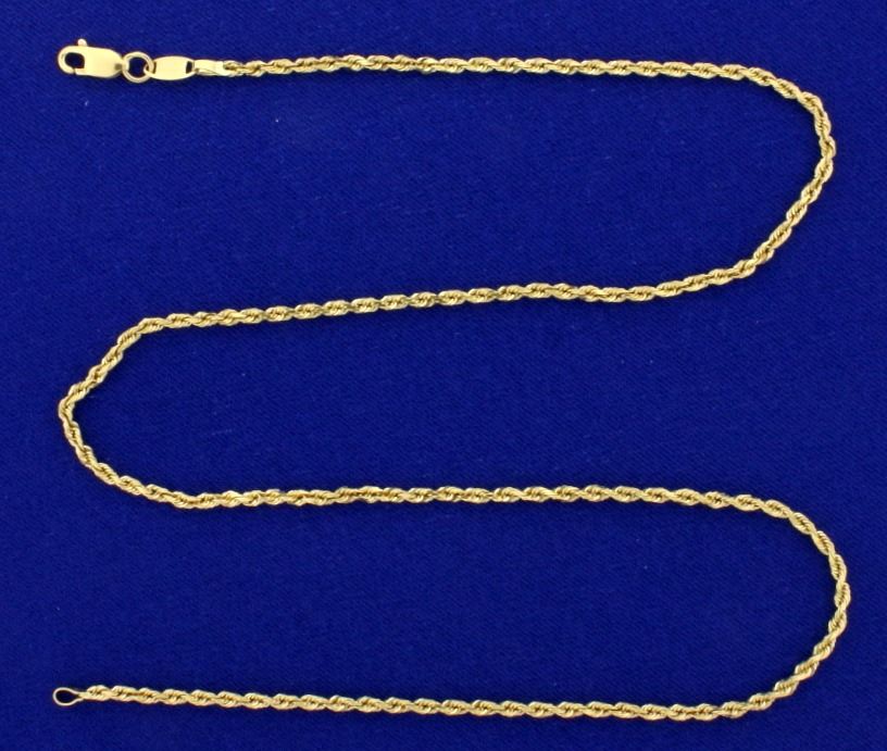 In 14k yellow gold, 18 1/4" and 2.2mm wide with lobster clasp. 6.8g.