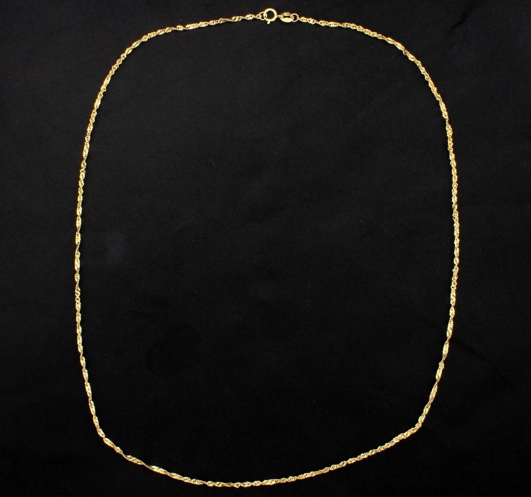 The chain is 14K yellow gold and is 1.4mm thick. 1.3g
