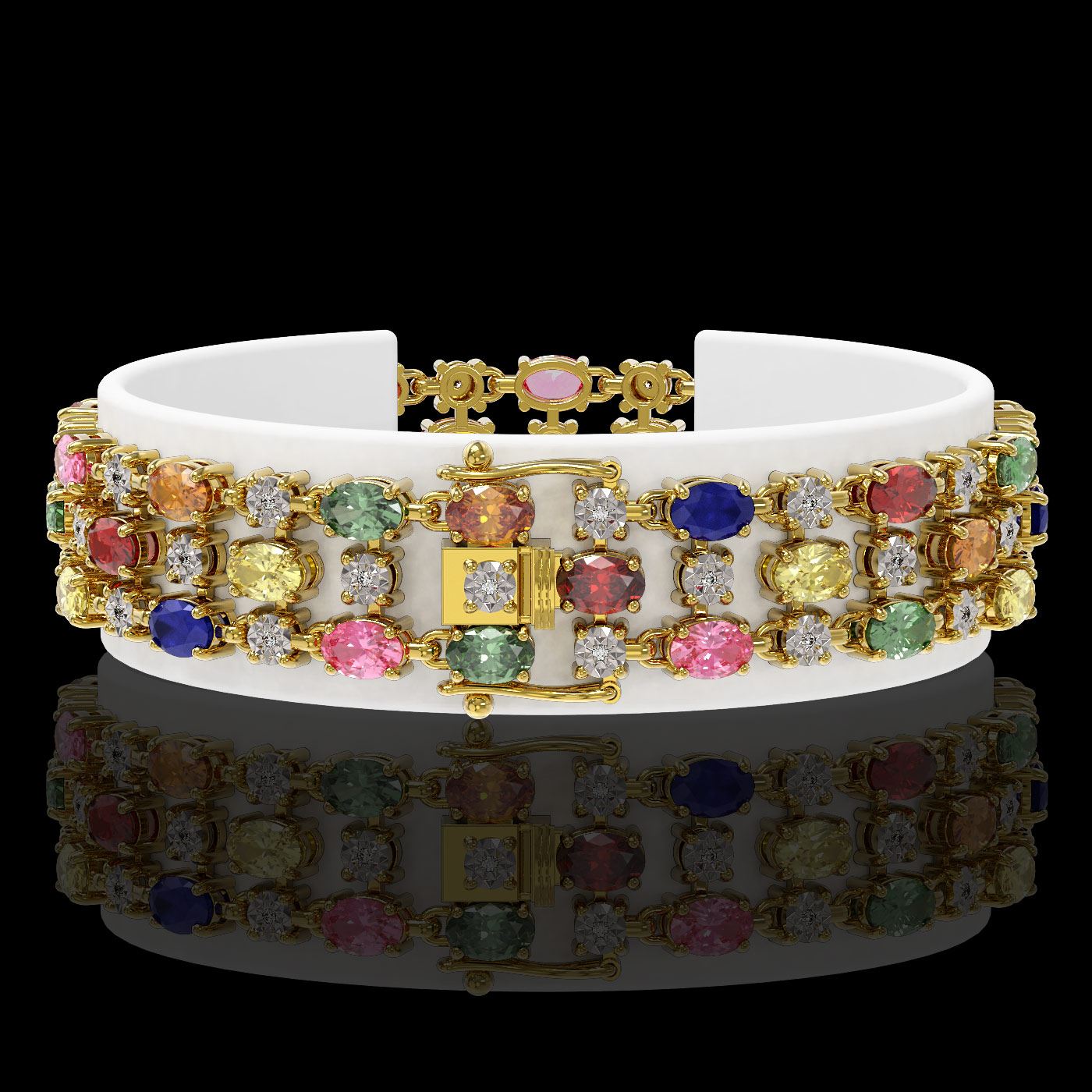 REF-250Y9X - SKU: 41007 ---- 18.16 ctw Multi Color Sapphire & Diamond Row Bracelet 10K Yellow Gold