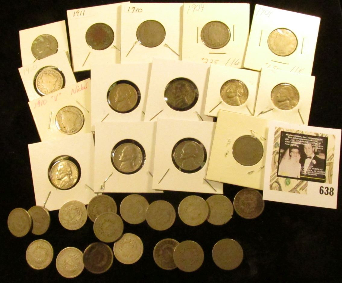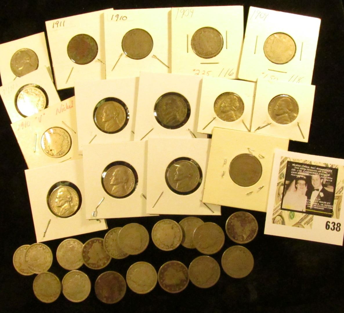(18) 1908, (2) 1909, (3) 1910, & 1911 Liberty "V" Nickels; & (8) Jefferson nickels including a Silver World War II Nickel.
