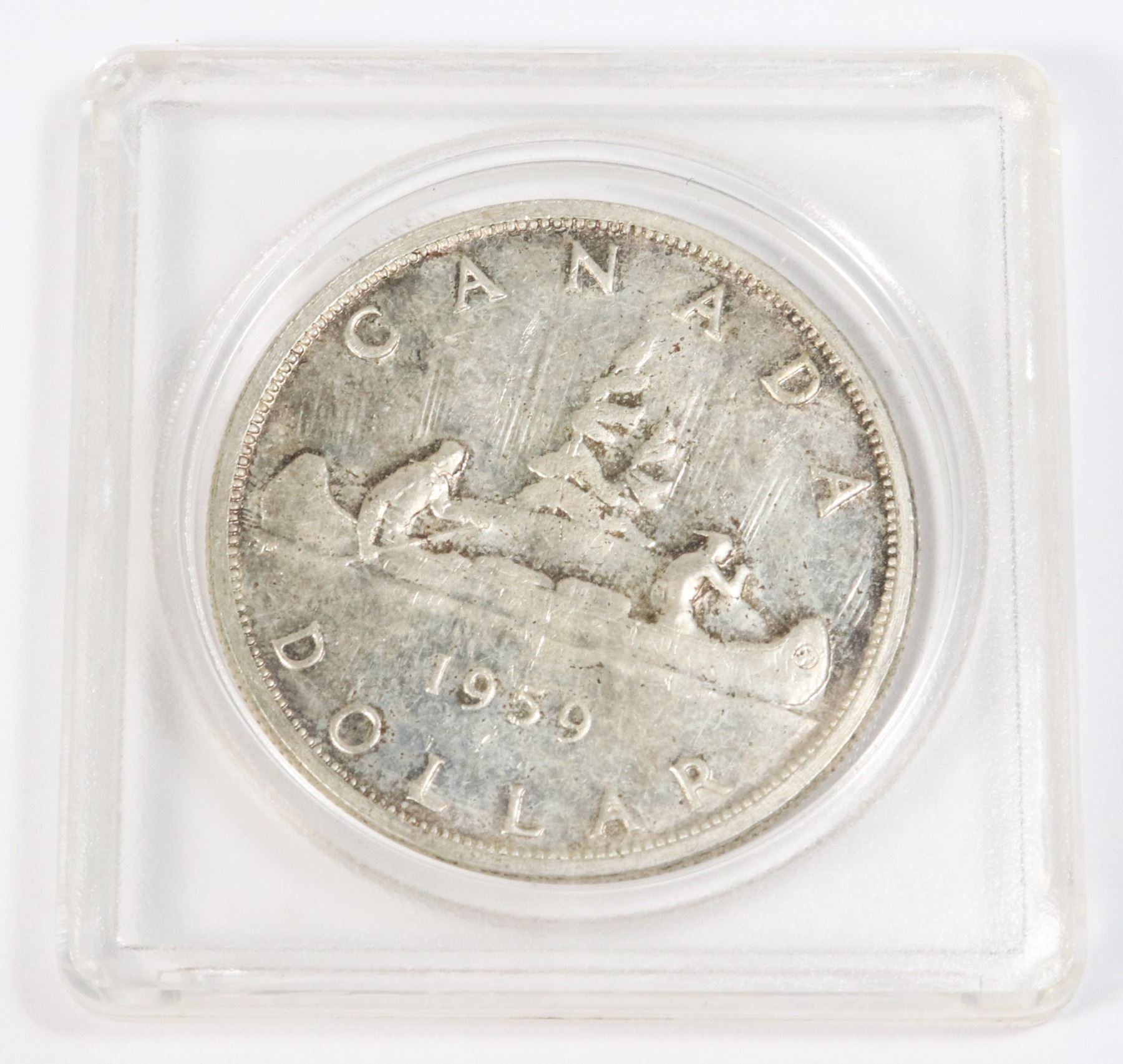 #18 1959 CANADIAN $1 VOYAGEUR SILVER DOLLAR COIN