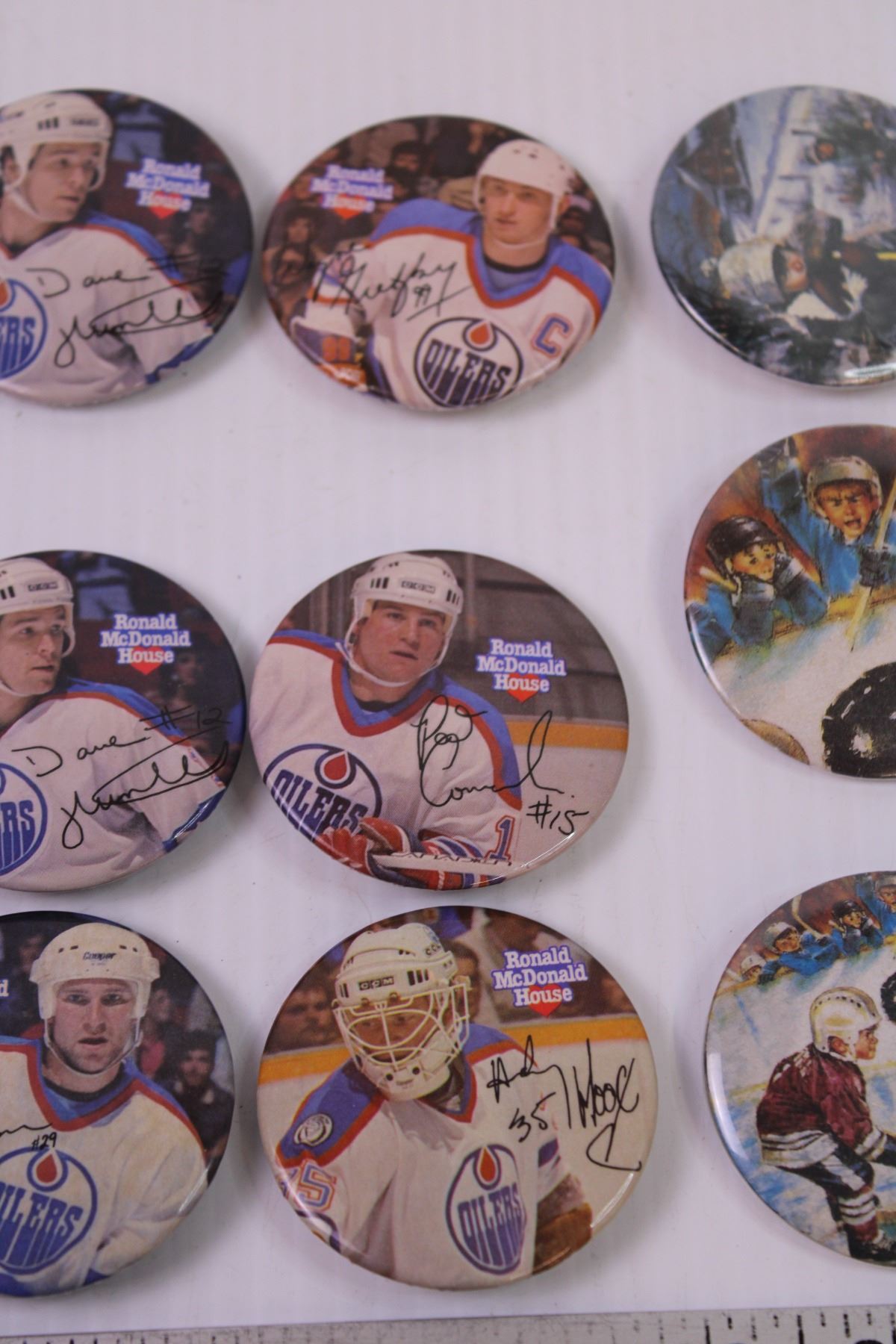 (18) 1983/84 Ronald McDonald Hope Edmonton Oilers Buttons (3 are Gretzky)