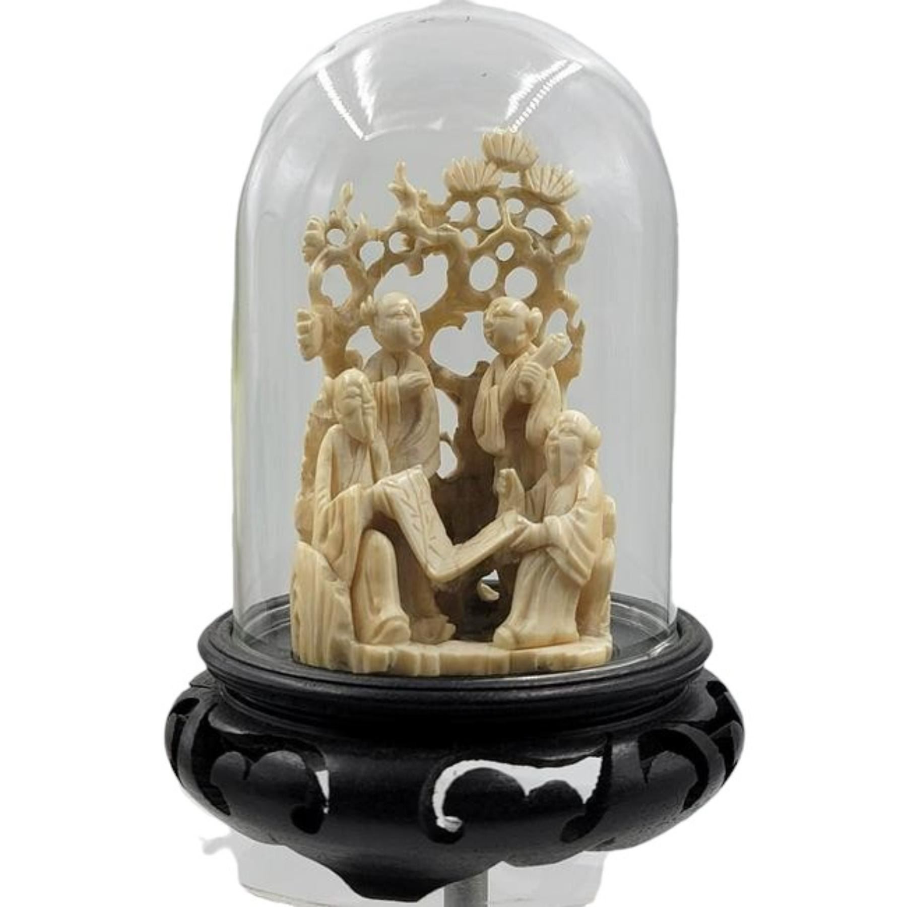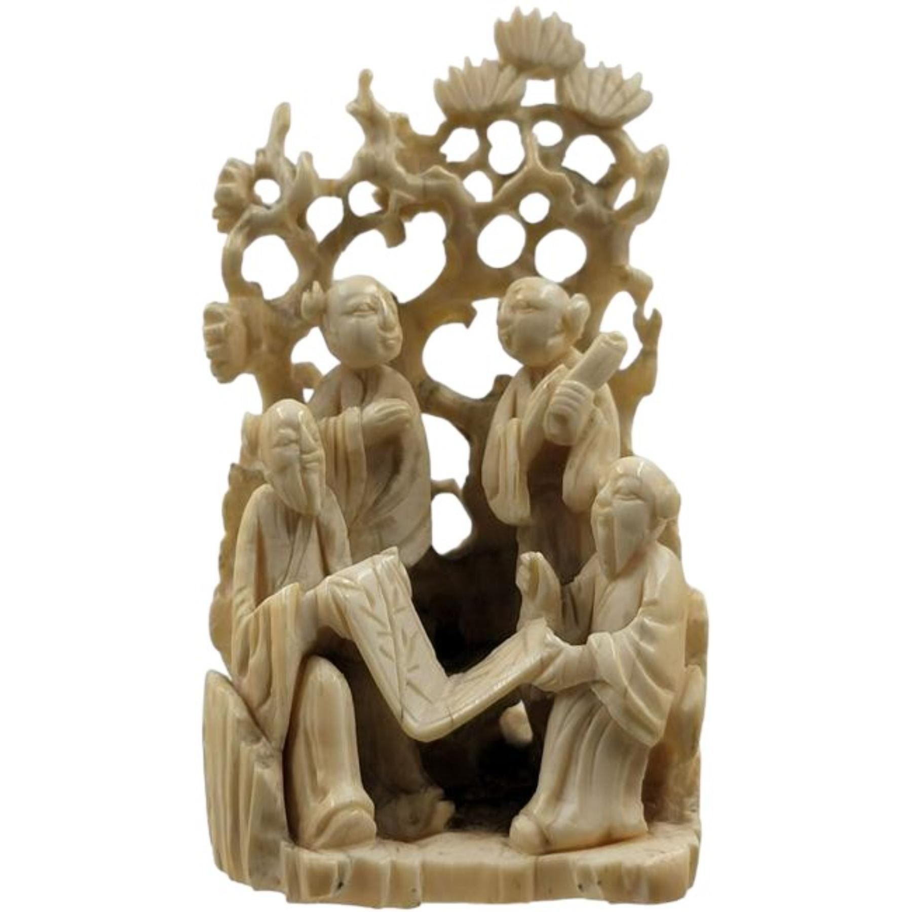 18-19th C Chinese Carved Figure, A Grouping Of Elders. Measure 3.5" X 2" X 2". Provenance: One Person Private Estate Central Florida.