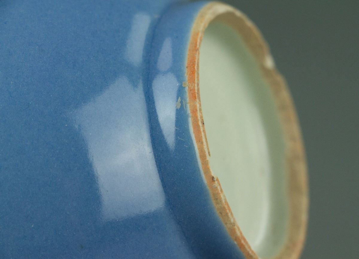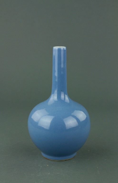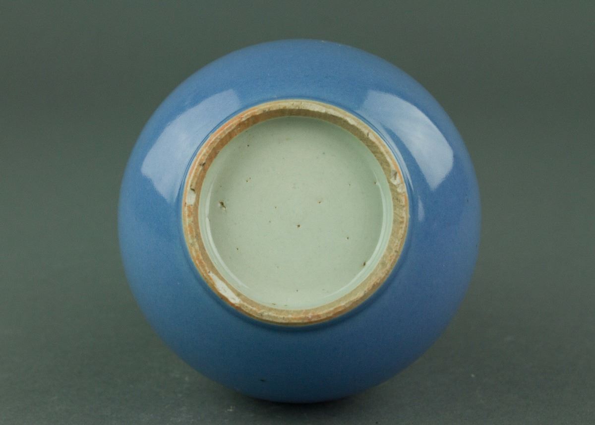 Chinese 18th to 19th century porcelain vase; of globular body surmounted by a slender neck; applied with sky blue glaze on body and white glaze on base; H: 20 cm, D: 12 cm, 480 grams