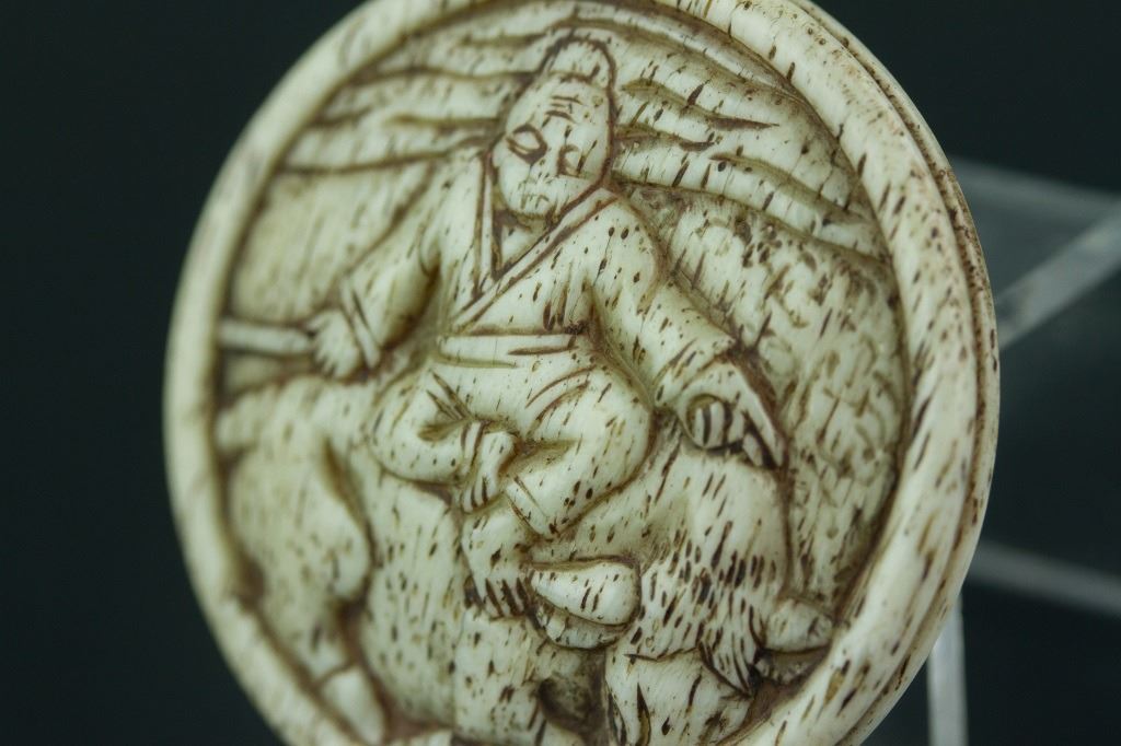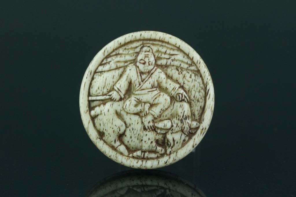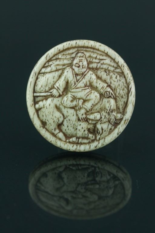 Japanese wood carved netsuke. 18-19th Century. H: 1.5 cm, D: 4.5 cm, 21 grams