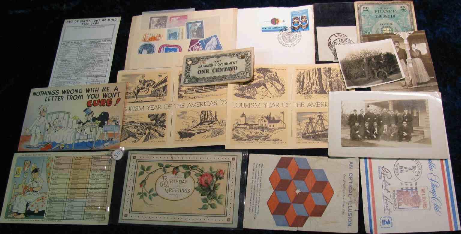 18. (2) Unused "Tourism Year of the Americas '72" 6c Prestamped Postcard; several old Postcards; United Nations Cover; & a collection of Mint United Nations stamps.